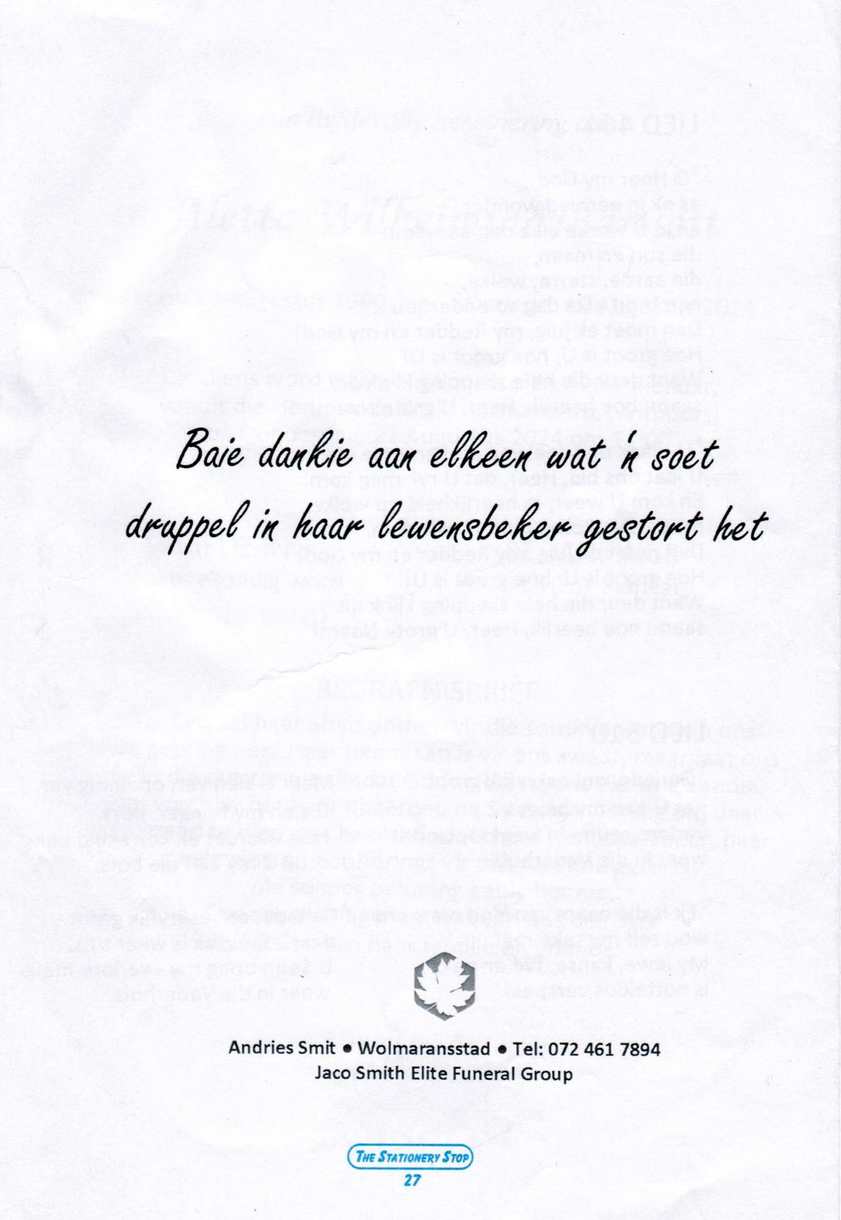 Funeral Programs / Begrafnisbriewe