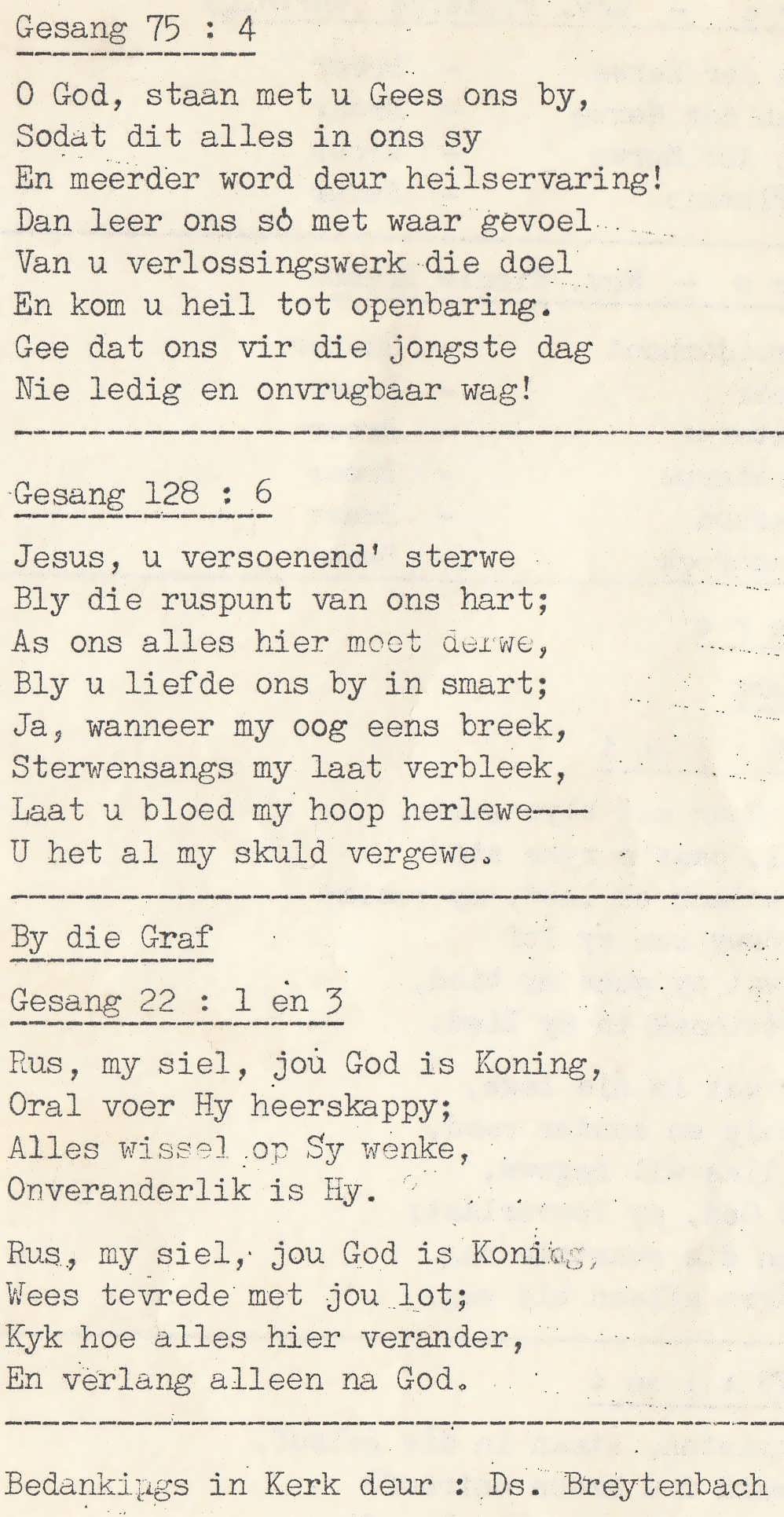 Funeral Programs / Begrafnisbriewe