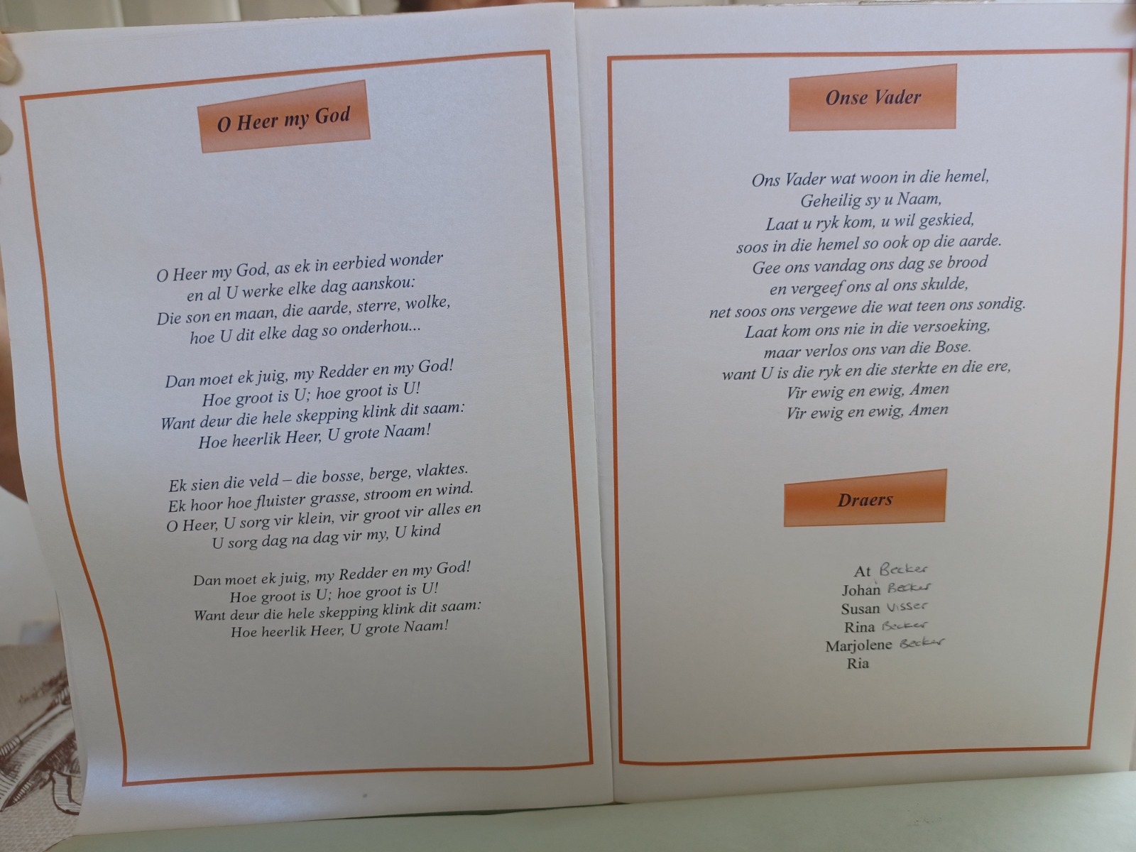 Funeral Programs / Begrafnisbriewe
