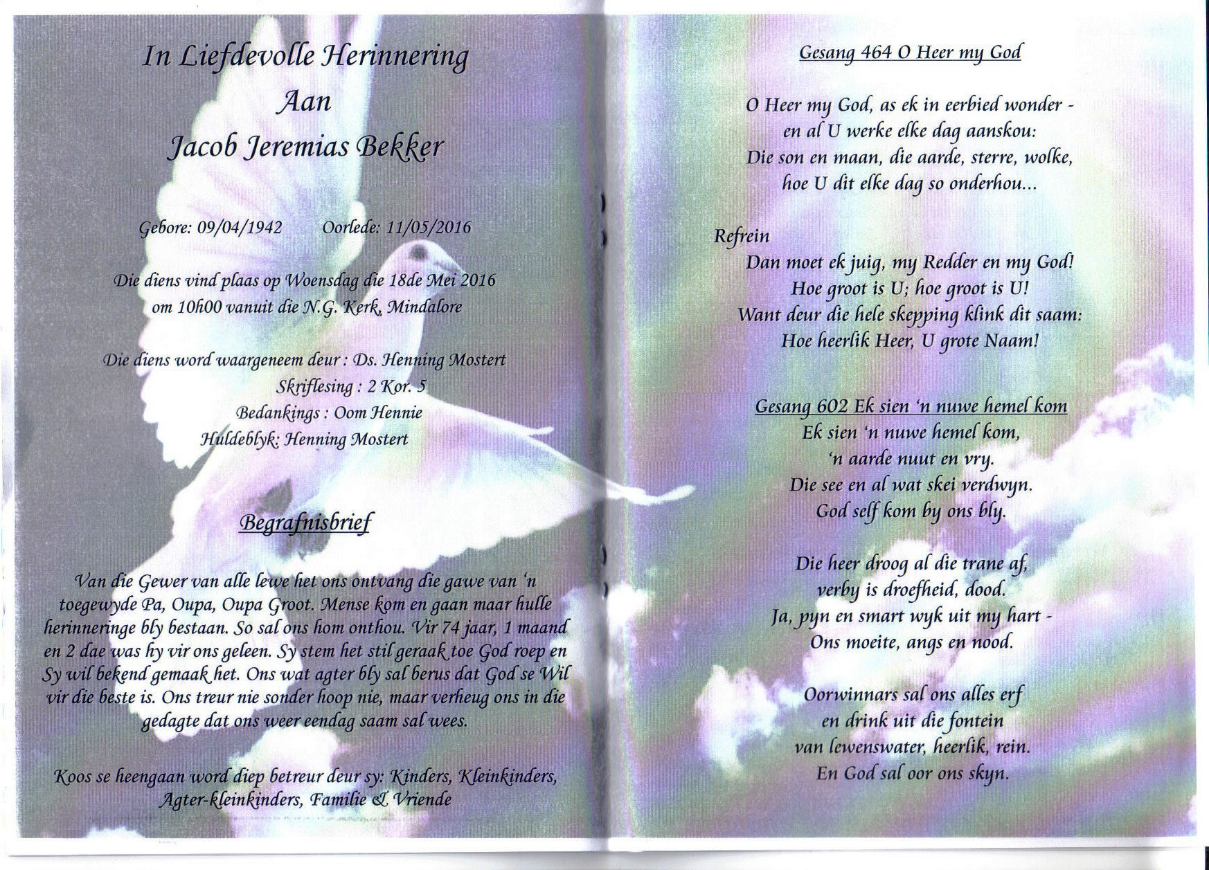 Funeral Programs / Begrafnisbriewe