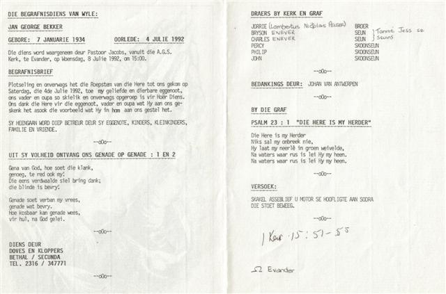 Funeral Programs / Begrafnisbriewe