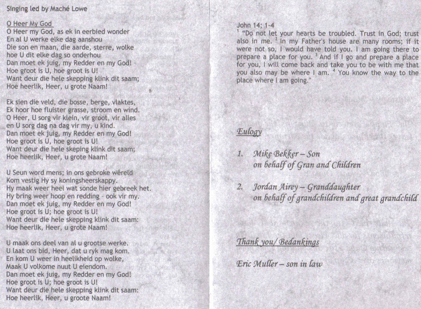 Funeral Programs / Begrafnisbriewe