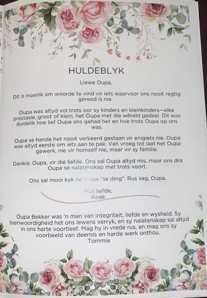 Funeral Programs / Begrafnisbriewe