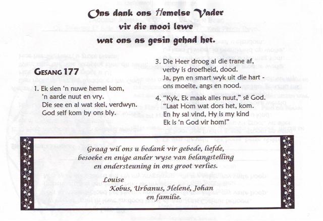 Funeral Programs / Begrafnisbriewe