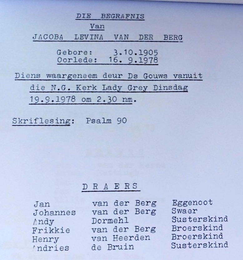 Funeral Programs / Begrafnisbriewe