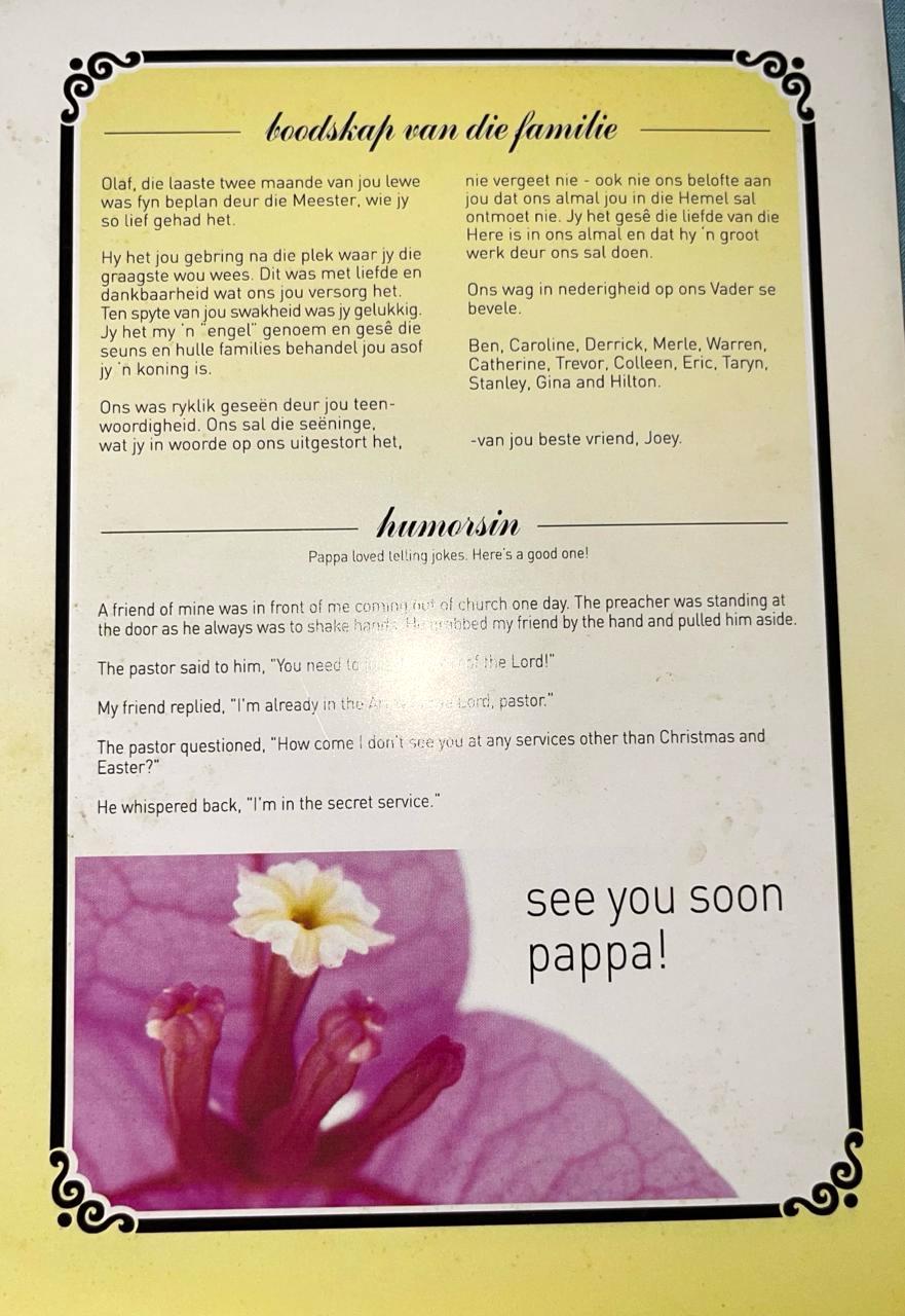Funeral Programs / Begrafnisbriewe