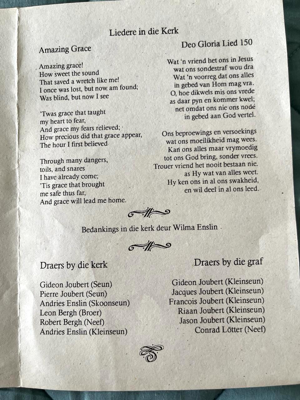 Funeral Programs / Begrafnisbriewe