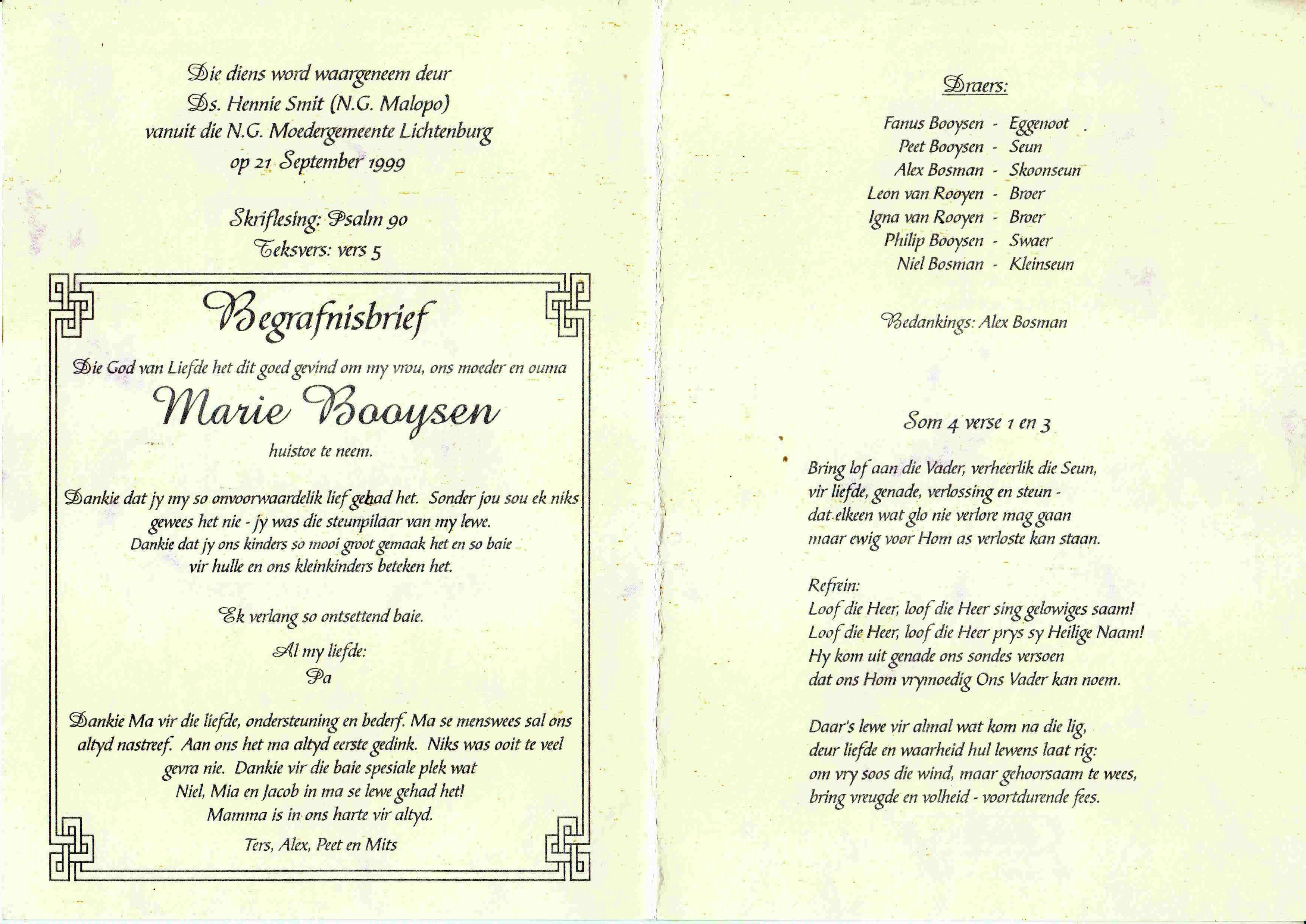 Funeral Programs / Begrafnisbriewe