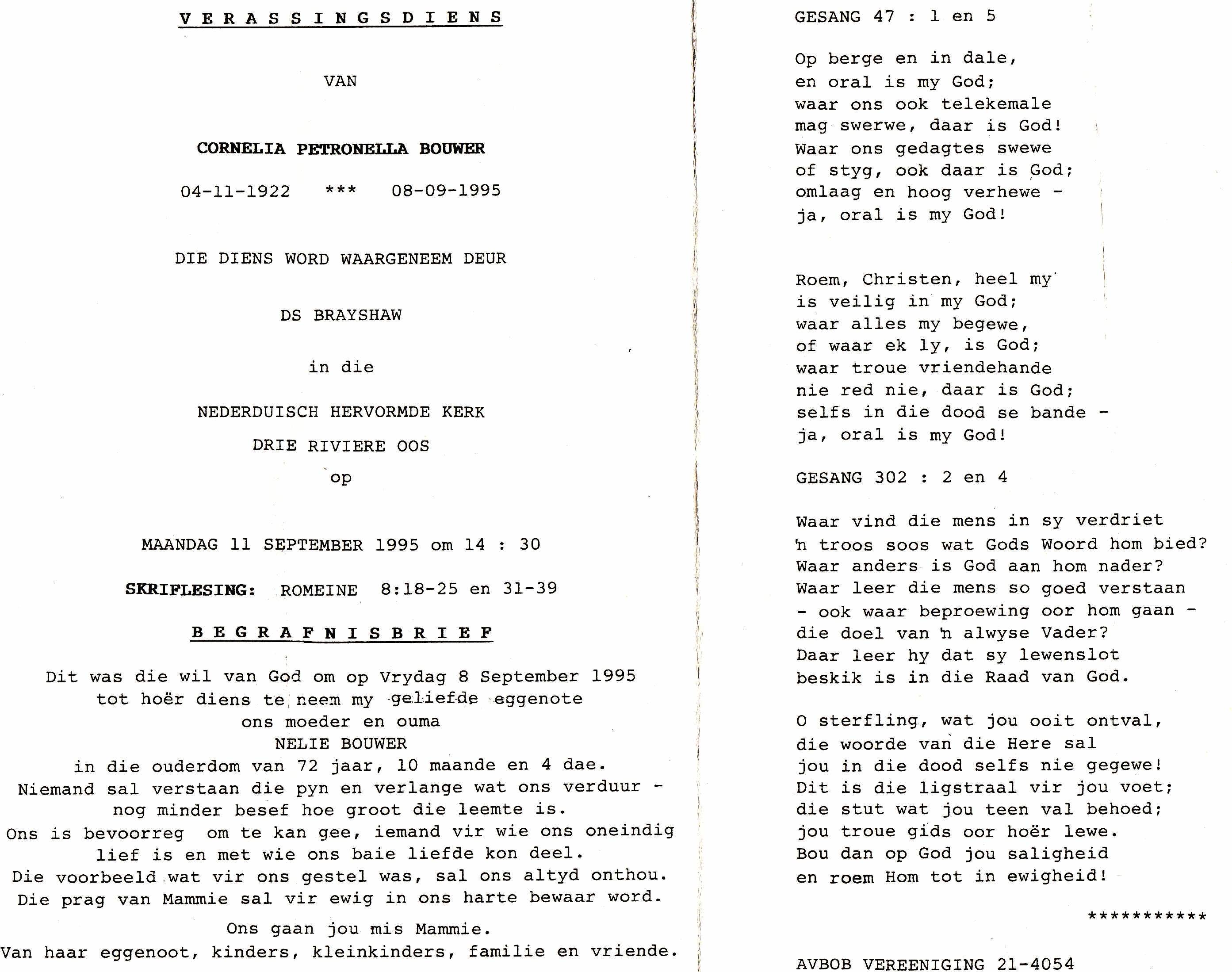 BOUWER-Cornelia-Petronella-Nn-Nelie-nee-Pretorius-1922-1995-F
