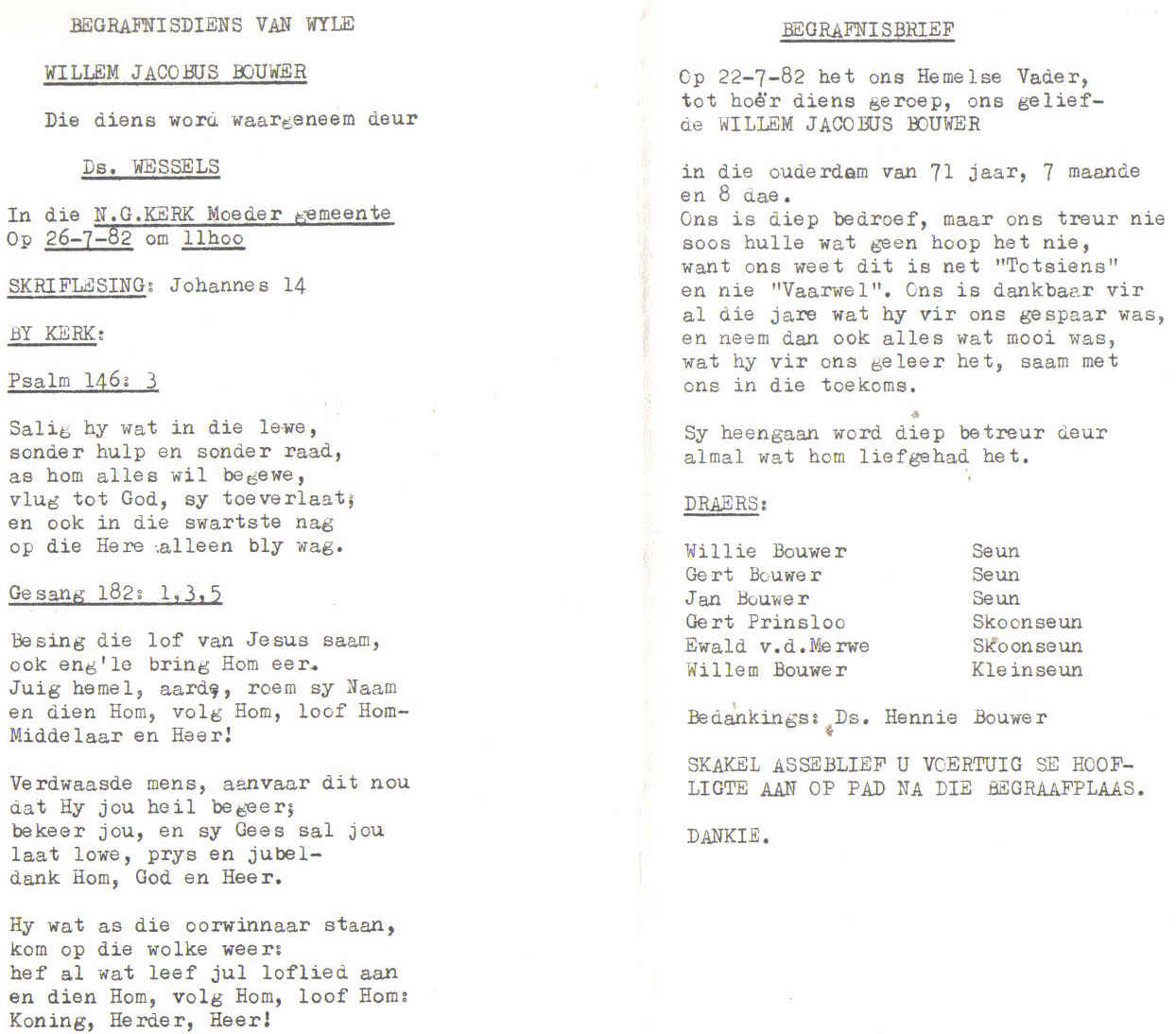 Funeral Programs / Begrafnisbriewe