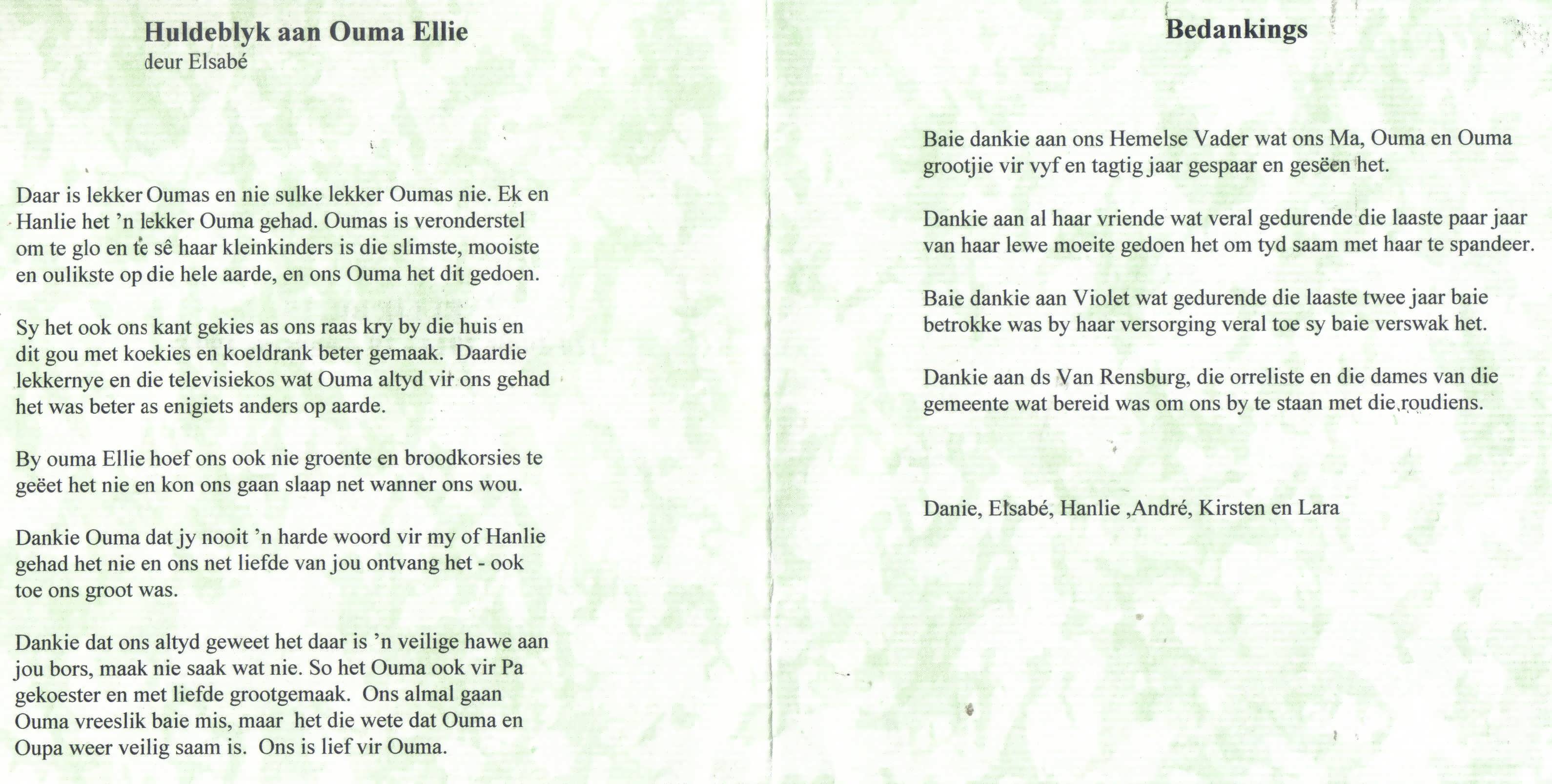Funeral Programs / Begrafnisbriewe