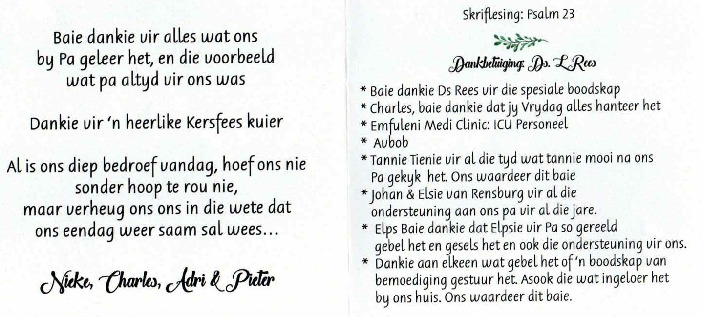 Funeral Programs / Begrafnisbriewe