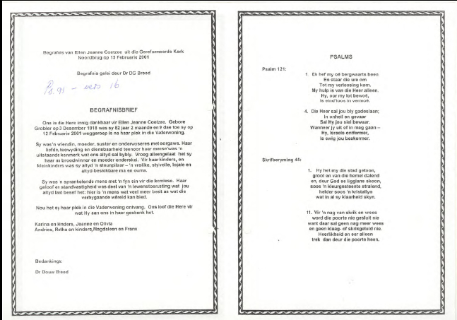 Funeral Programs / Begrafnisbriewe