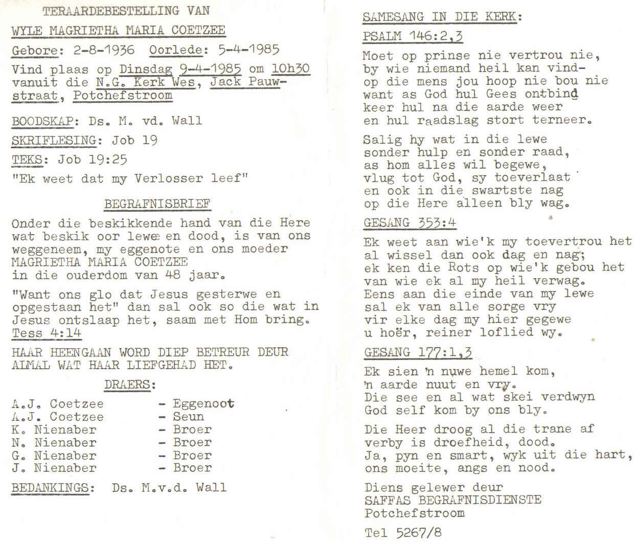 Funeral Programs / Begrafnisbriewe