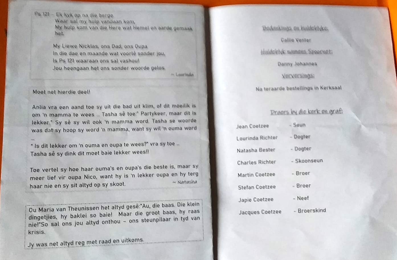 Funeral Programs / Begrafnisbriewe