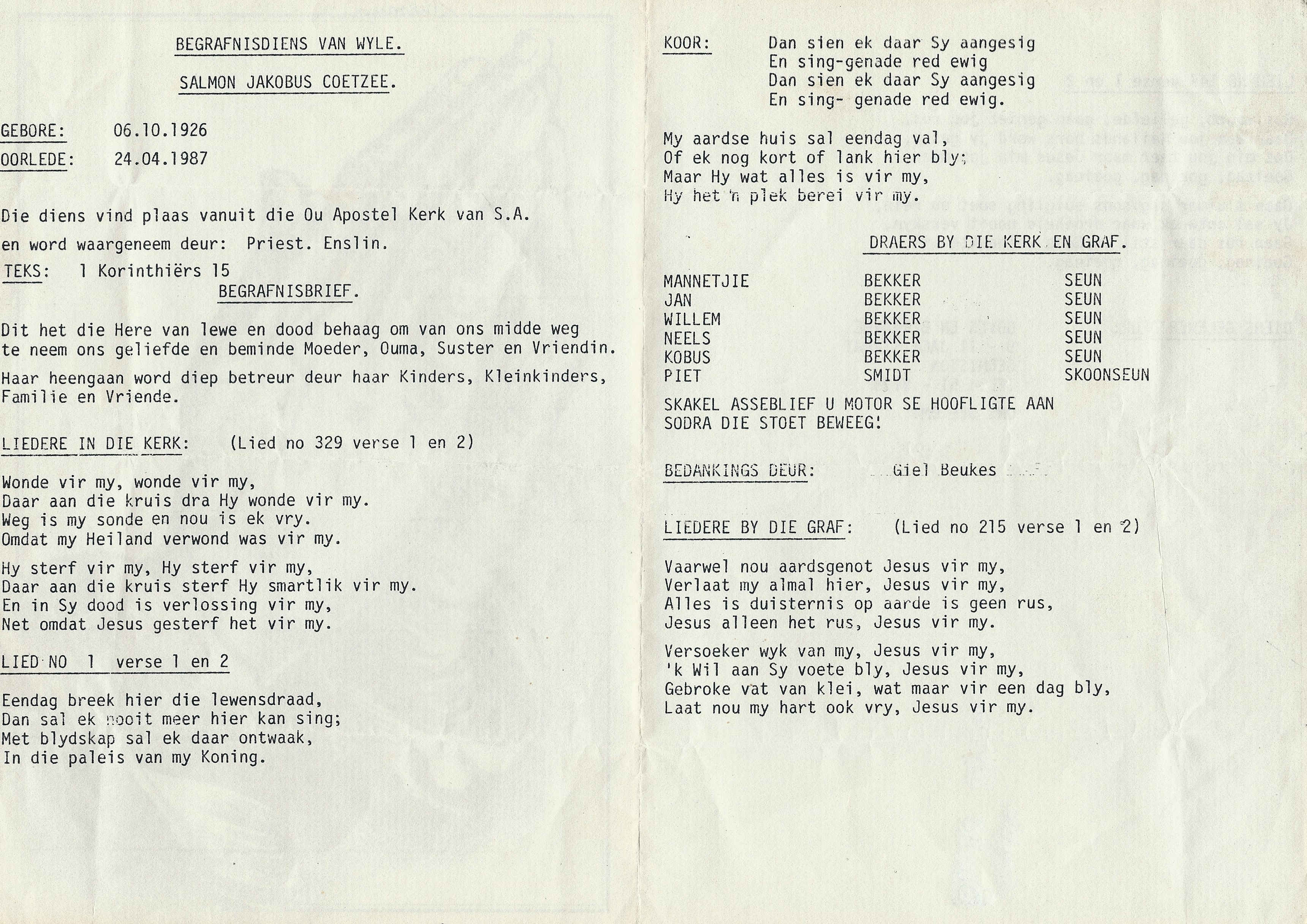Funeral Programs / Begrafnisbriewe