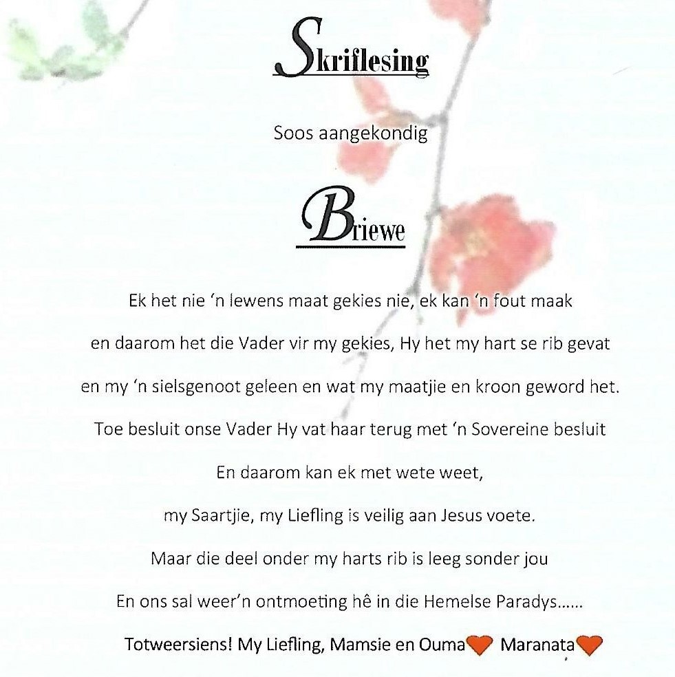 Funeral Programs / Begrafnisbriewe