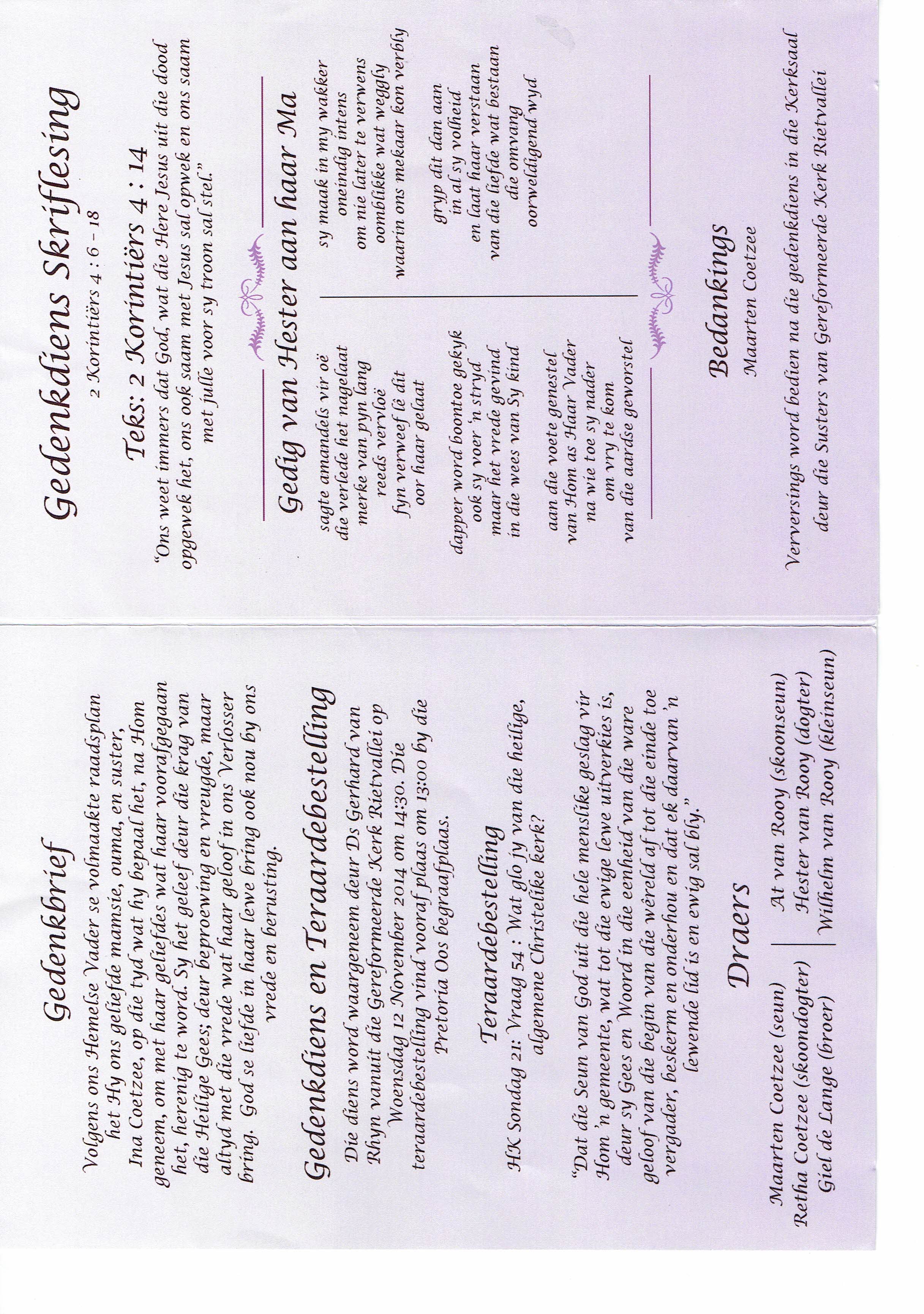 Funeral Programs / Begrafnisbriewe
