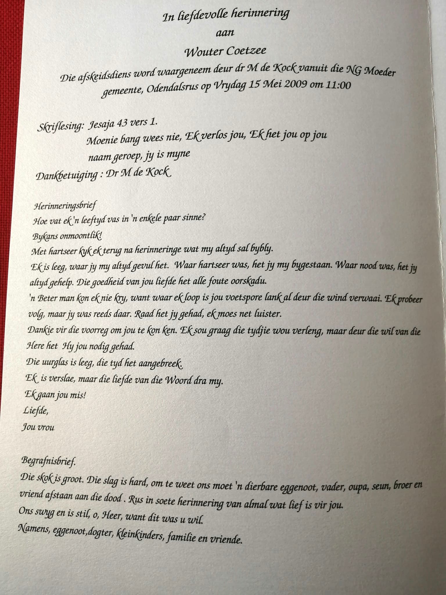 Funeral Programs / Begrafnisbriewe