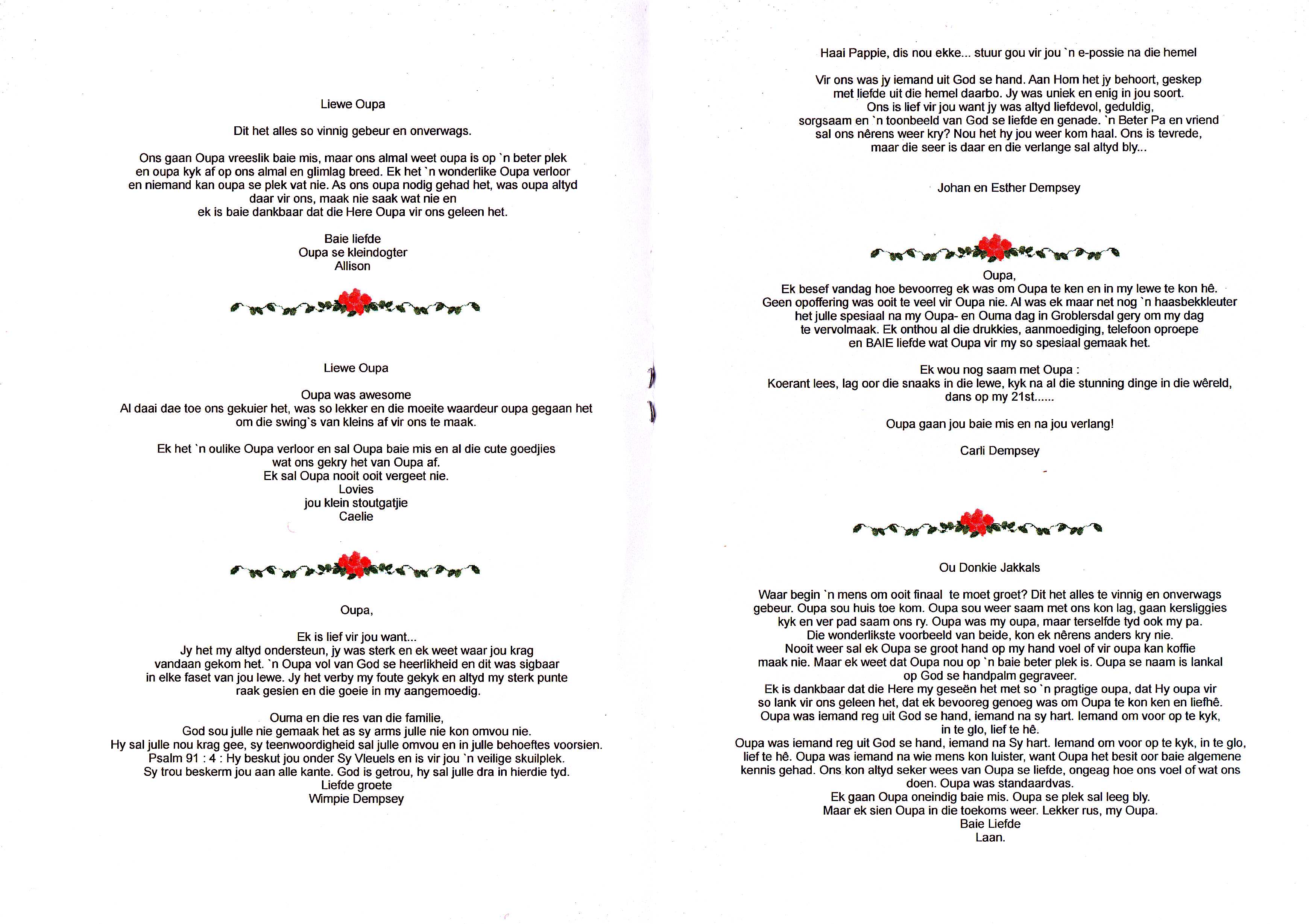 Funeral Programs / Begrafnisbriewe