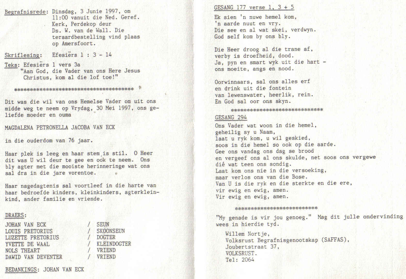 Funeral Programs / Begrafnisbriewe