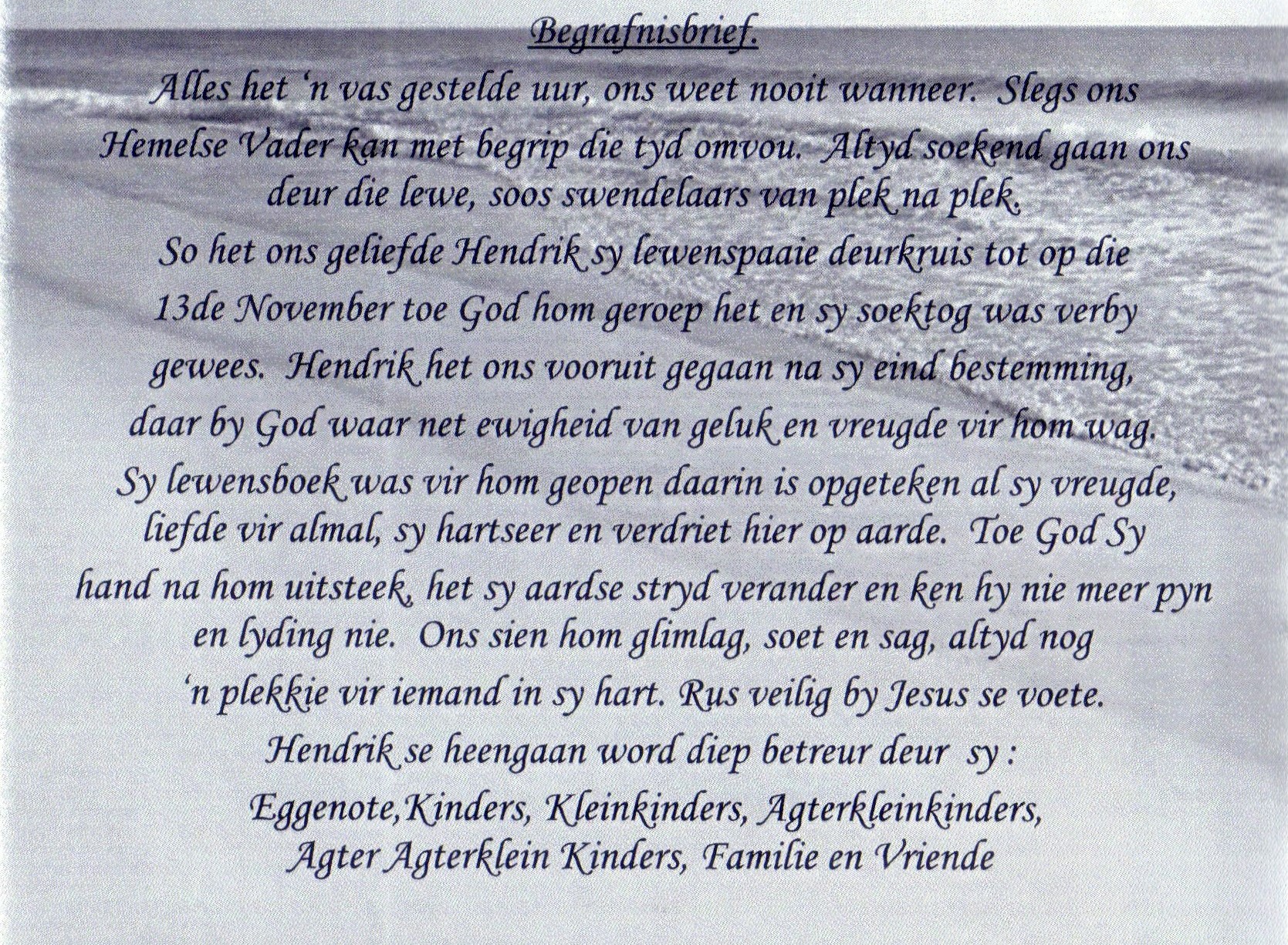 Funeral Programs / Begrafnisbriewe
