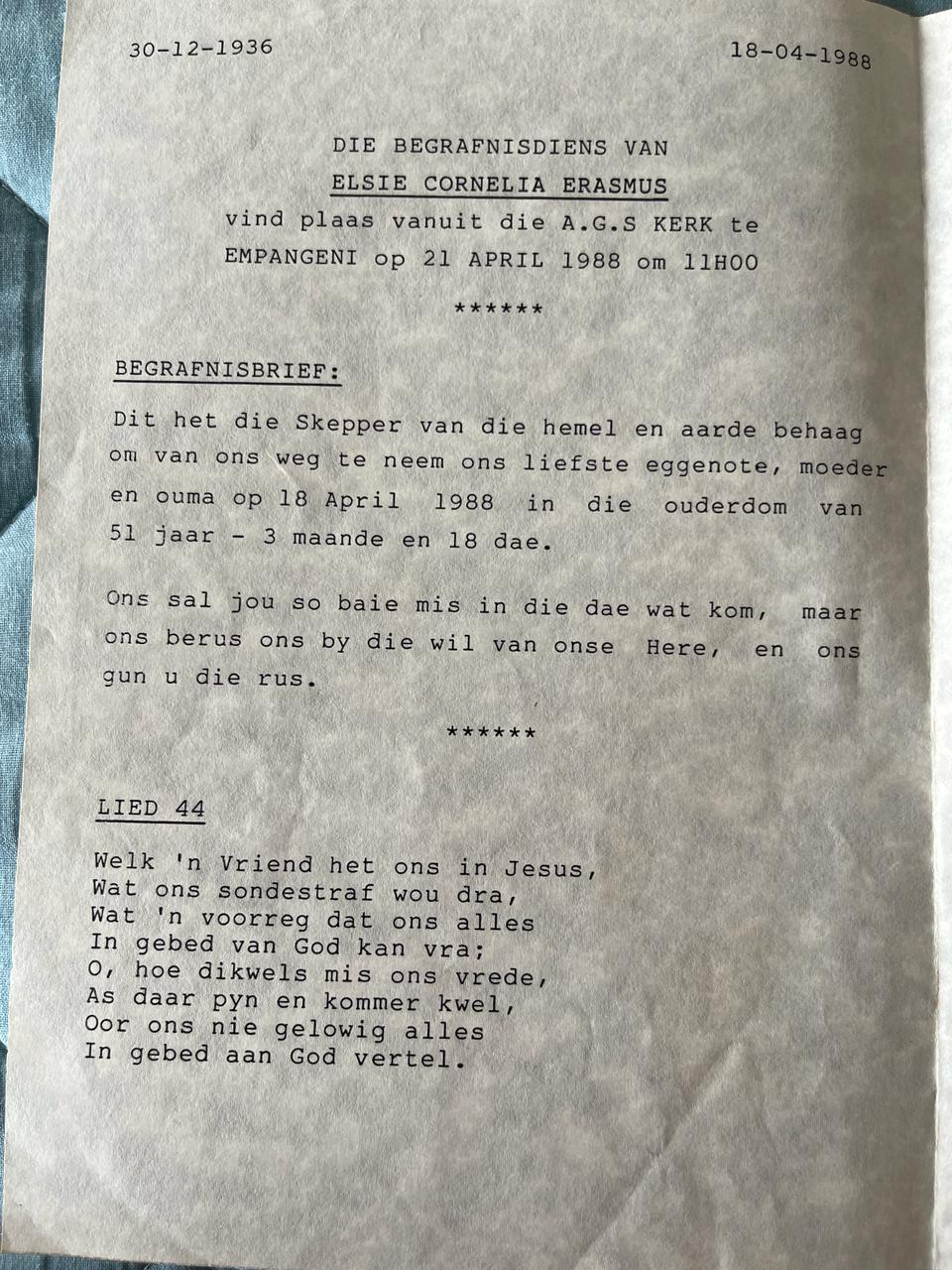 Funeral Programs / Begrafnisbriewe
