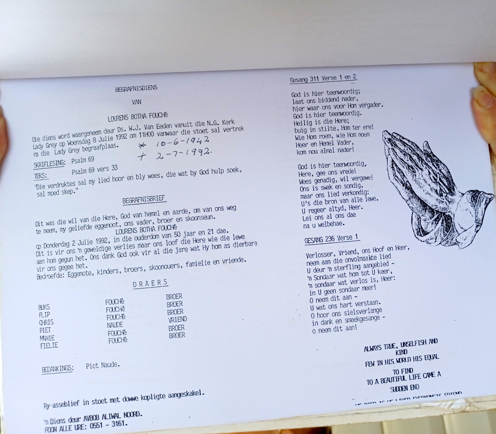 Funeral Programs / Begrafnisbriewe