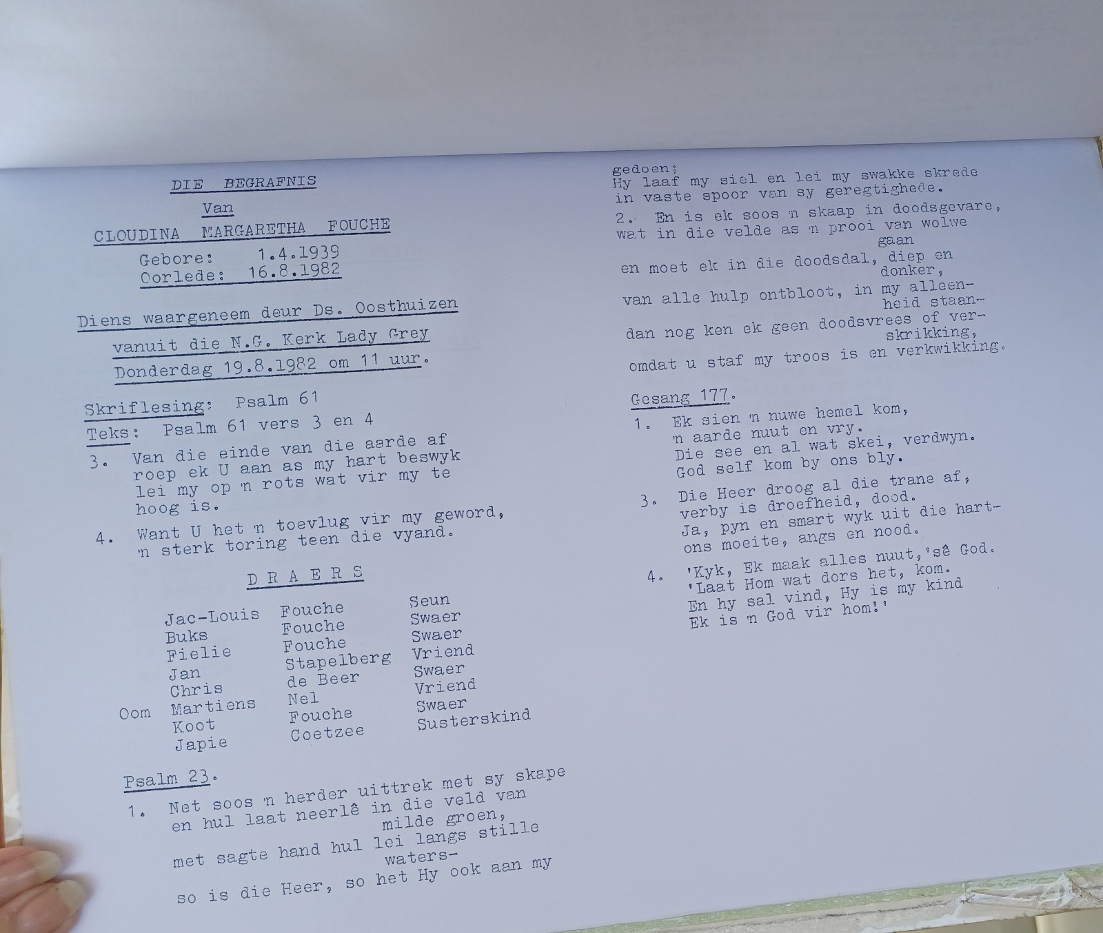 Funeral Programs / Begrafnisbriewe