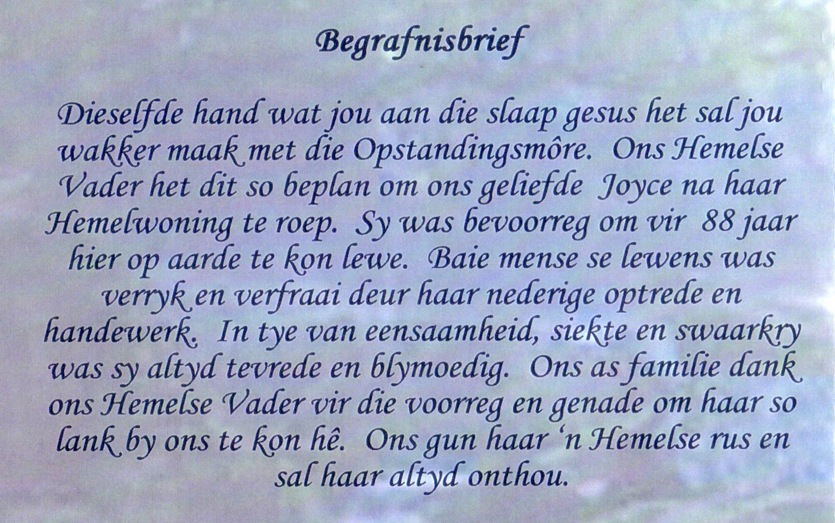 Funeral Programs / Begrafnisbriewe