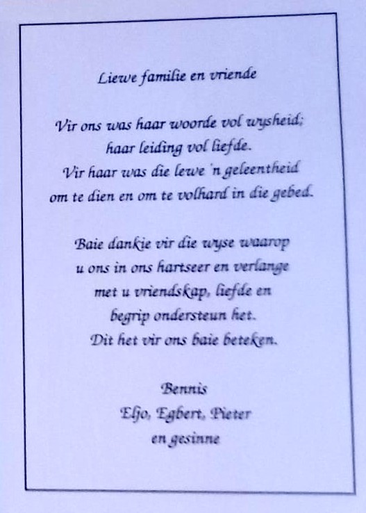 Funeral Programs / Begrafnisbriewe