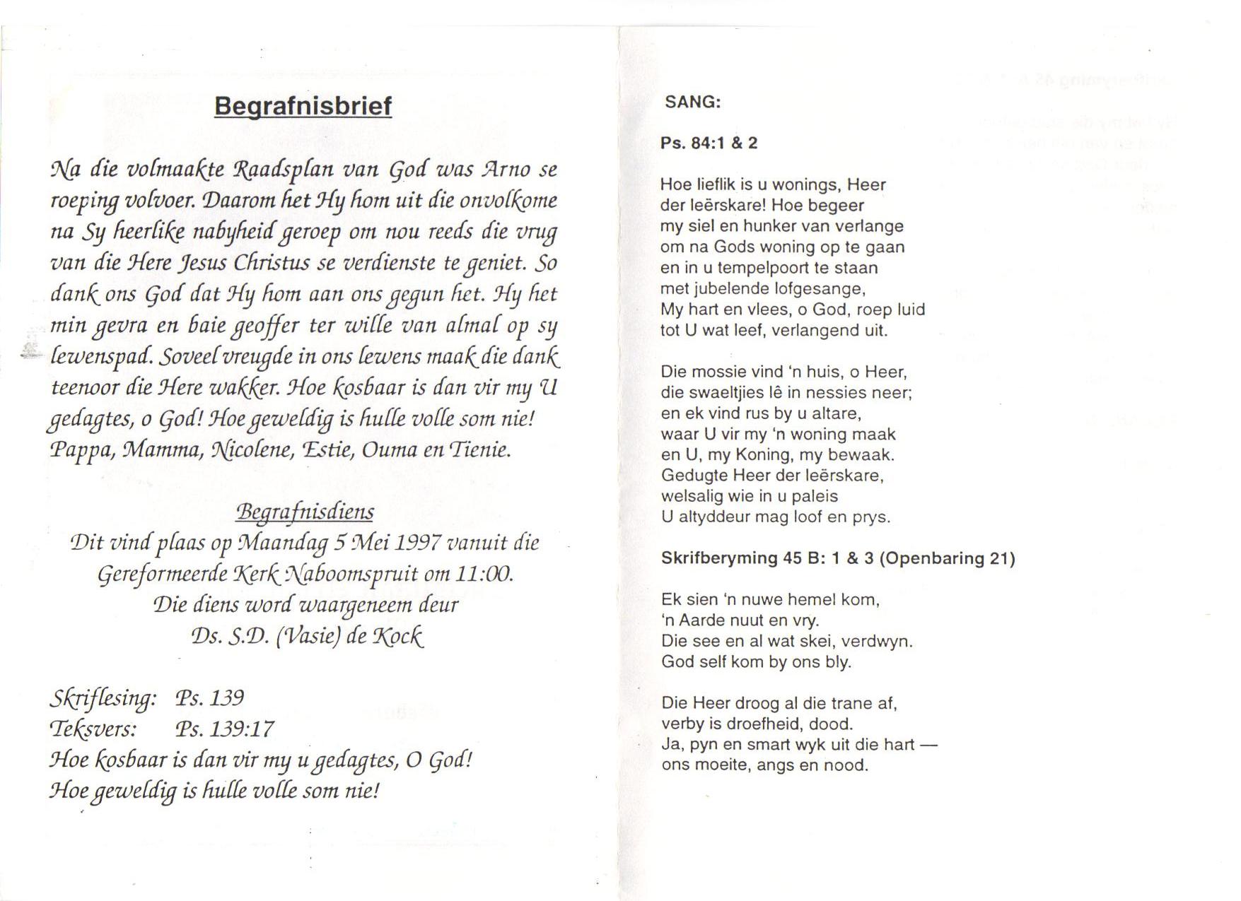 Funeral Programs / Begrafnisbriewe