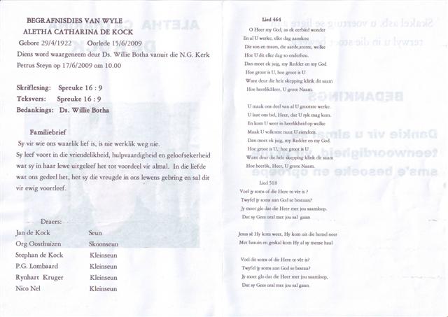 Funeral Programs / Begrafnisbriewe