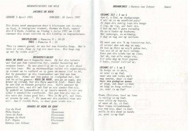 Funeral Programs / Begrafnisbriewe