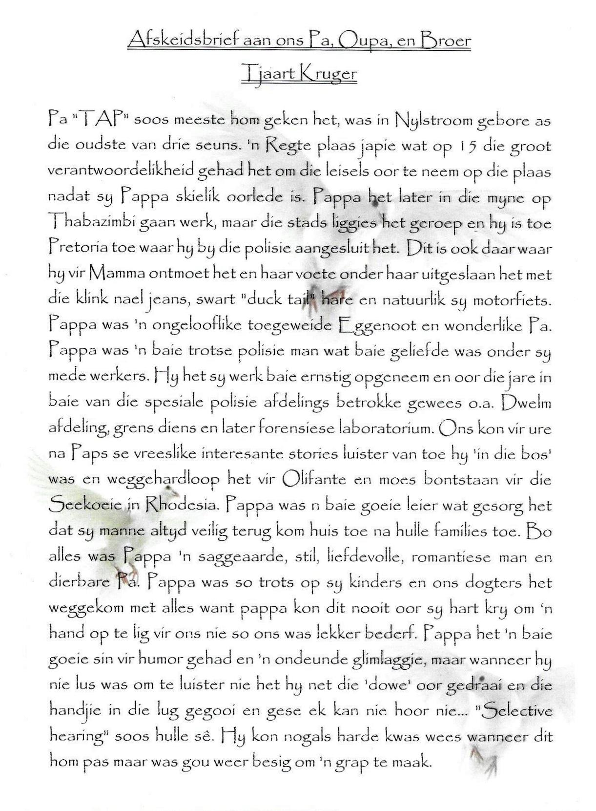Funeral Programs / Begrafnisbriewe