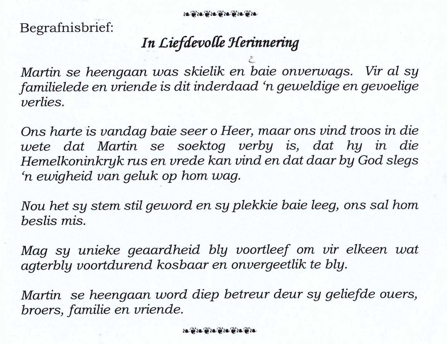 Funeral Programs / Begrafnisbriewe