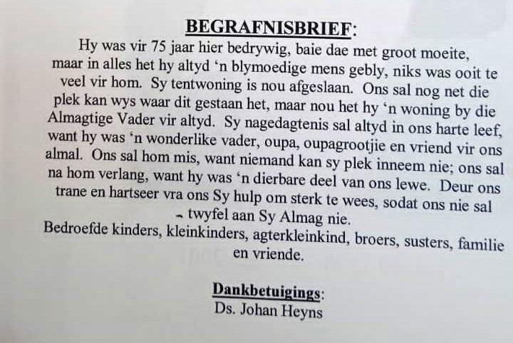 Funeral Programs / Begrafnisbriewe