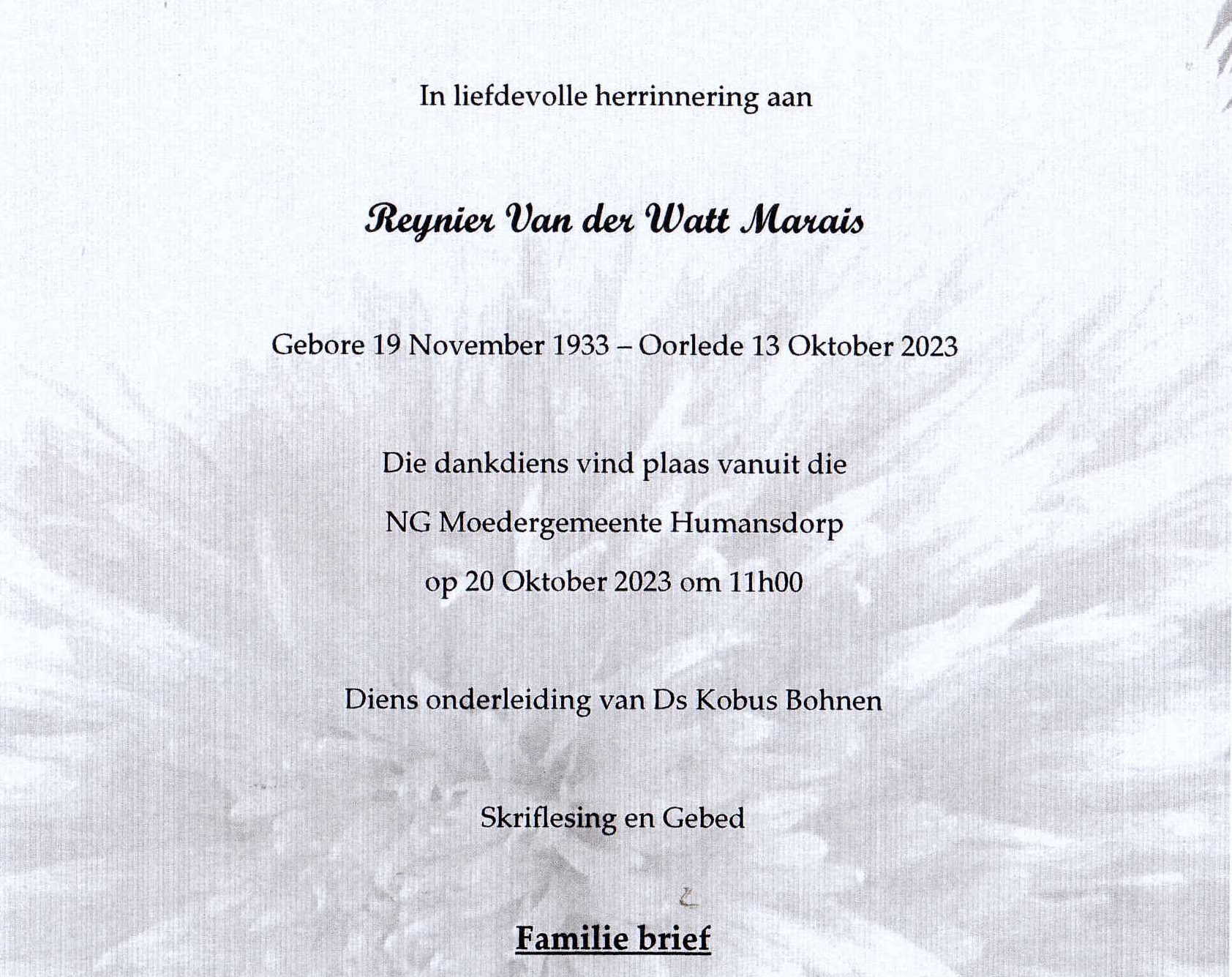 MARAIS-Reynier-VanDerWatt-1933-2023-M