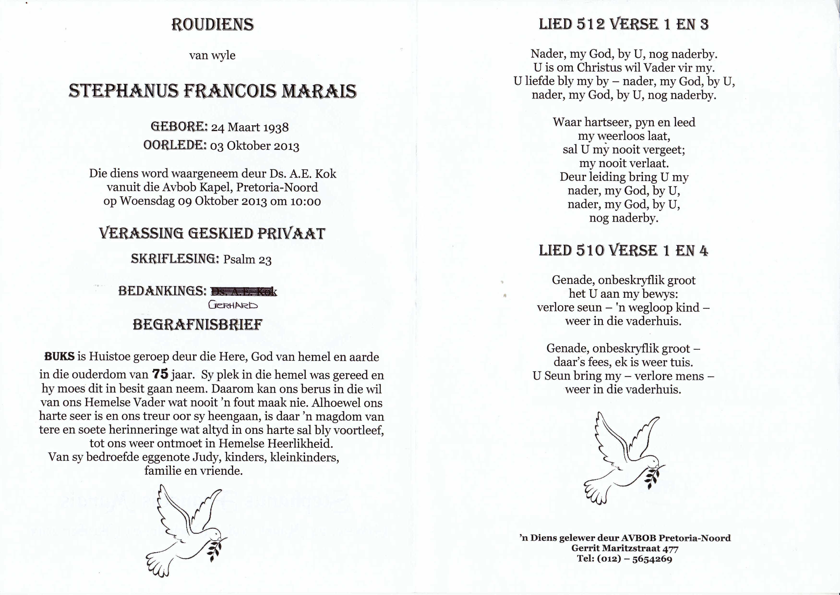 MARAIS-Stephanus-Francois-Nn-Buks-1938-2013-M
