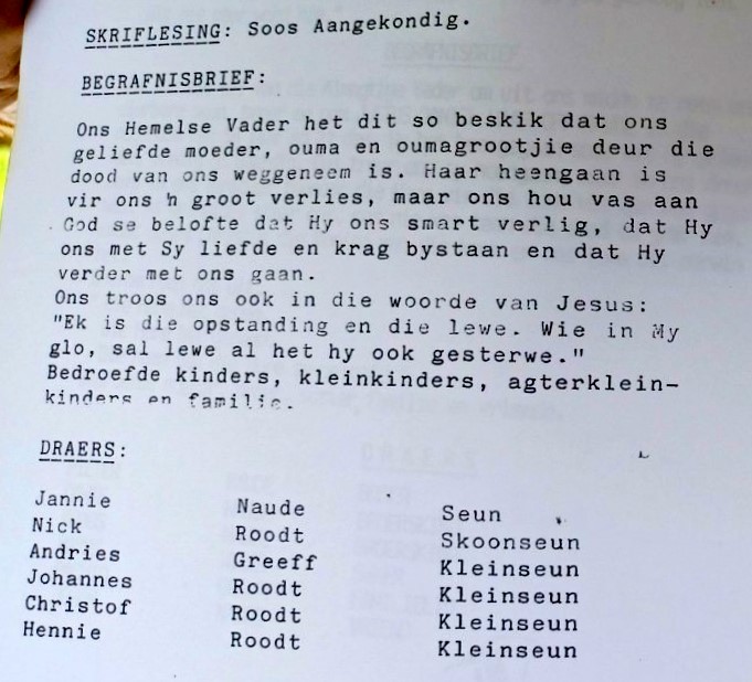 Funeral Programs / Begrafnisbriewe