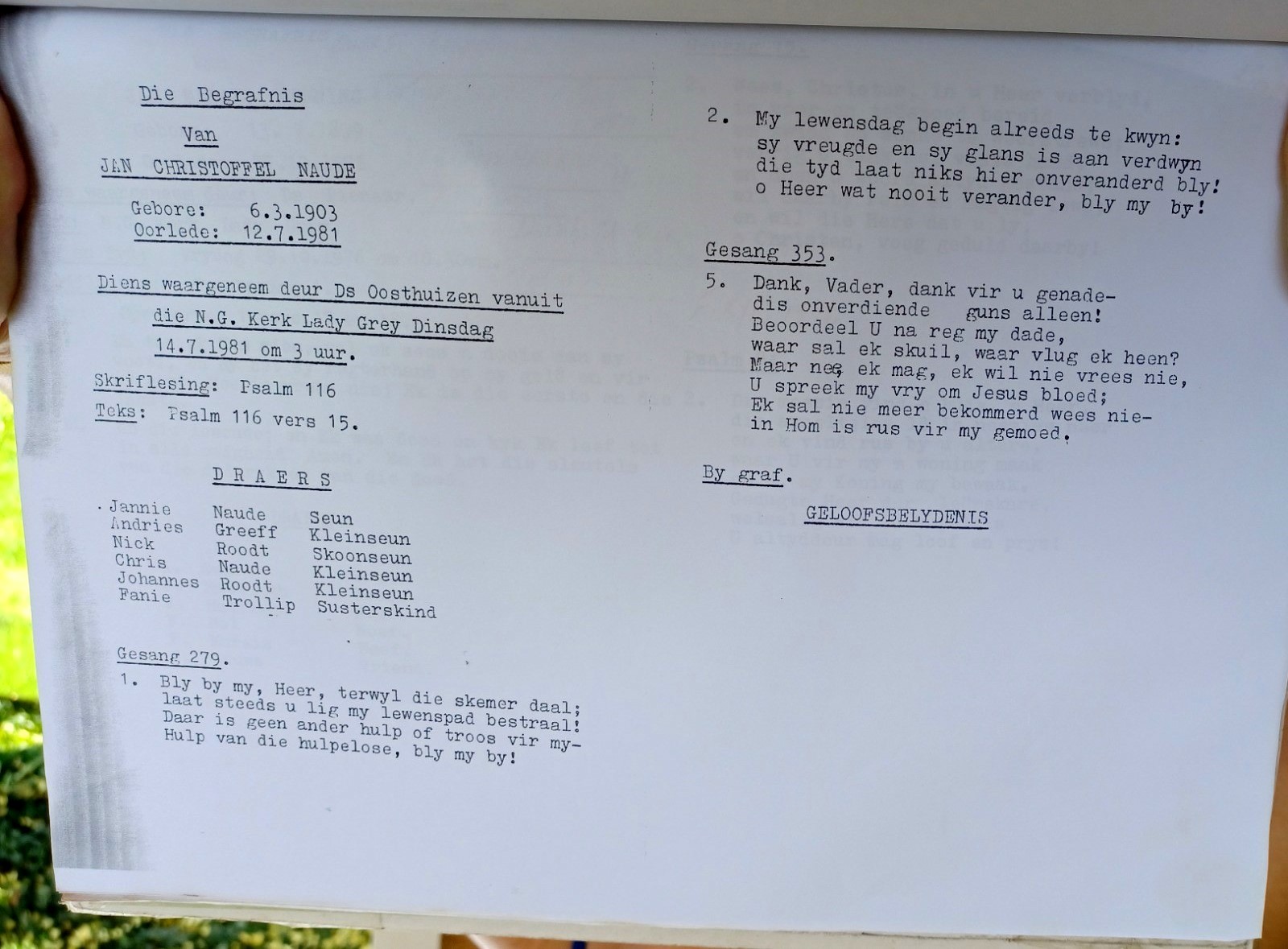 Funeral Programs / Begrafnisbriewe