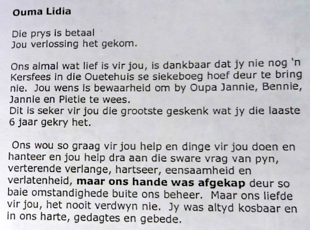 Funeral Programs / Begrafnisbriewe