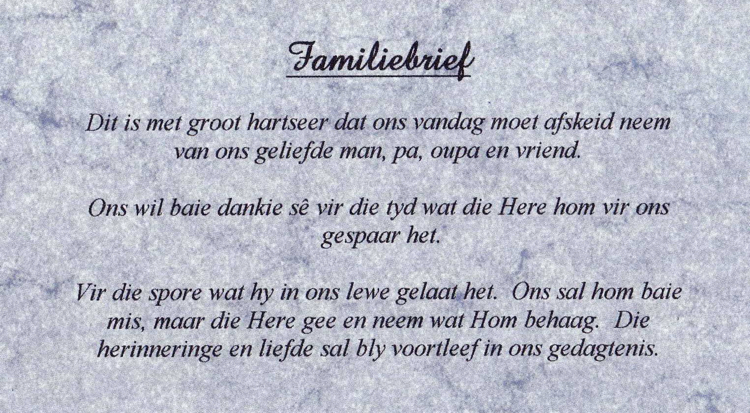 Funeral Programs / Begrafnisbriewe