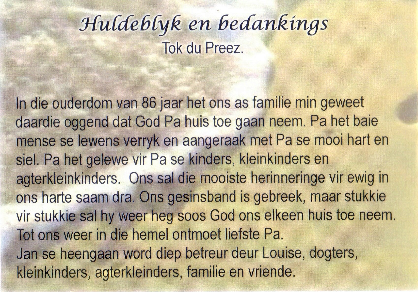 Funeral Programs / Begrafnisbriewe