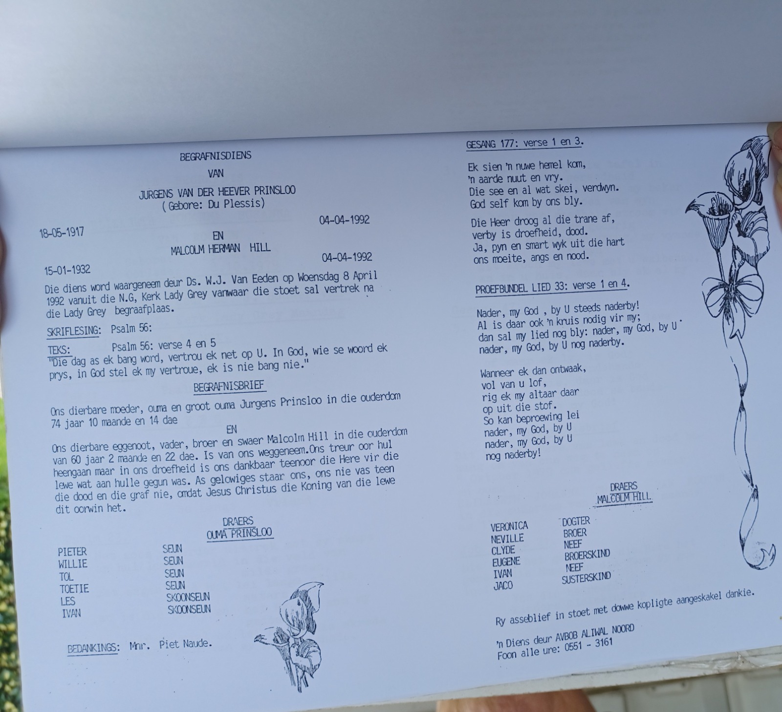 Funeral Programs / Begrafnisbriewe