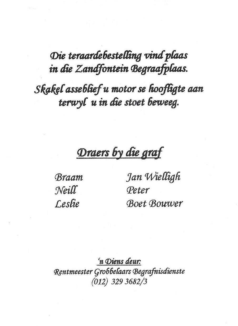 Funeral Programs / Begrafnisbriewe