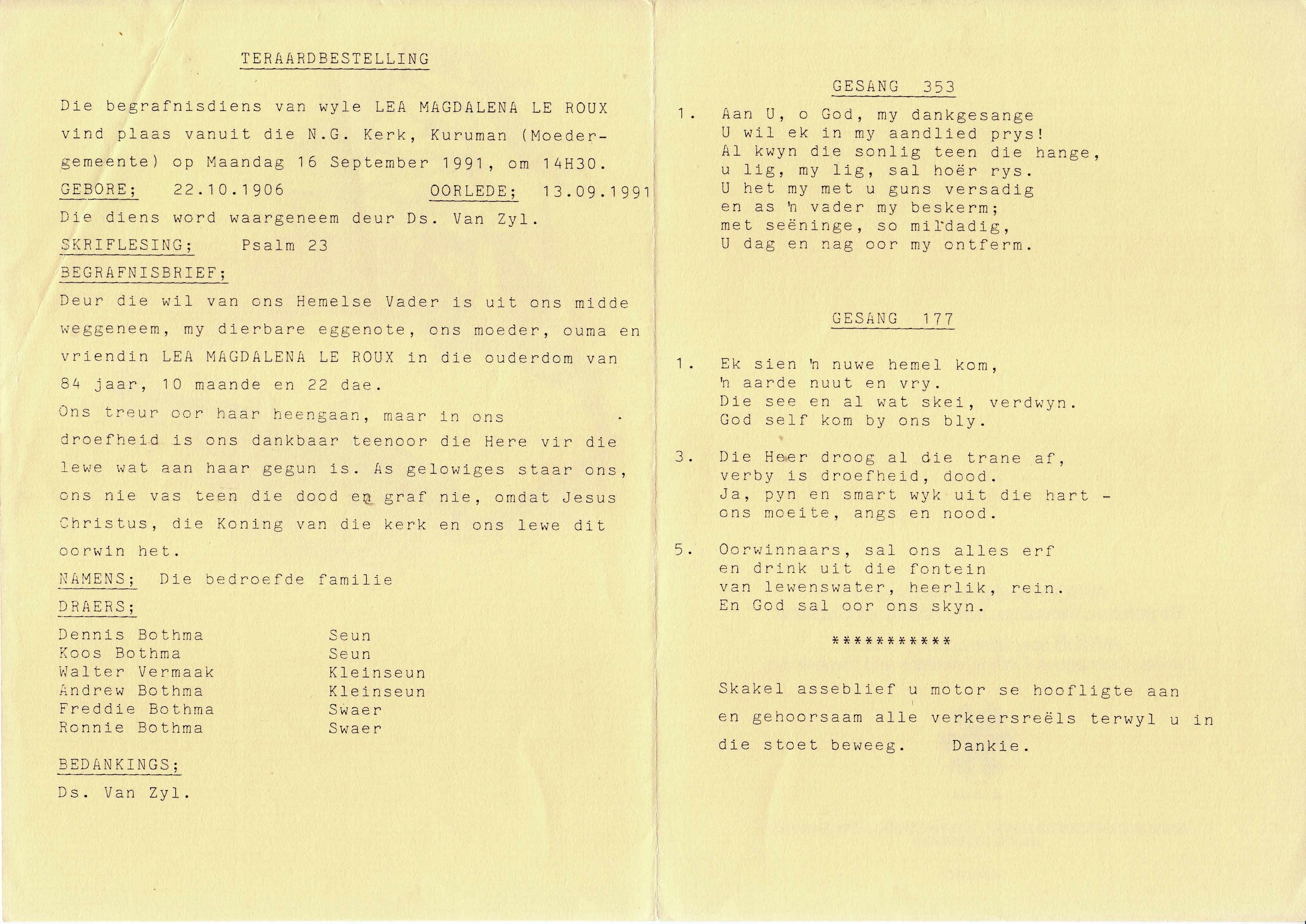 Funeral Programs / Begrafnisbriewe