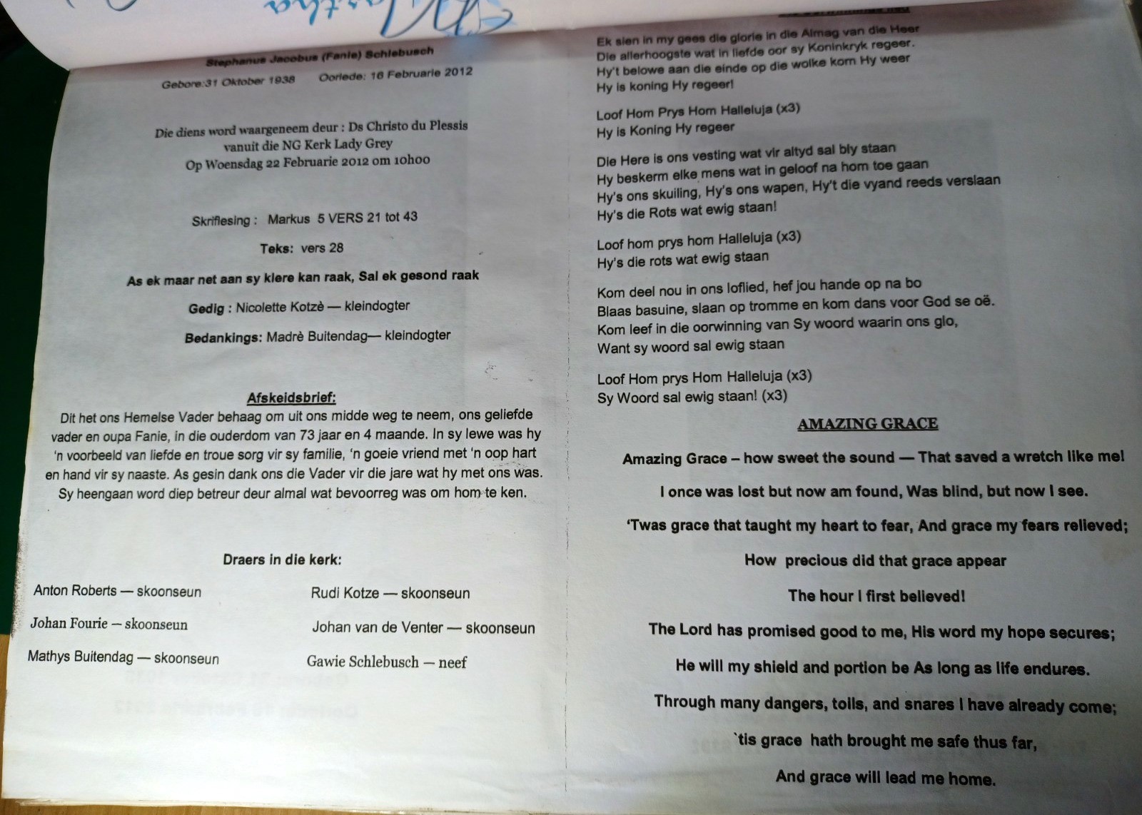 Funeral Programs / Begrafnisbriewe