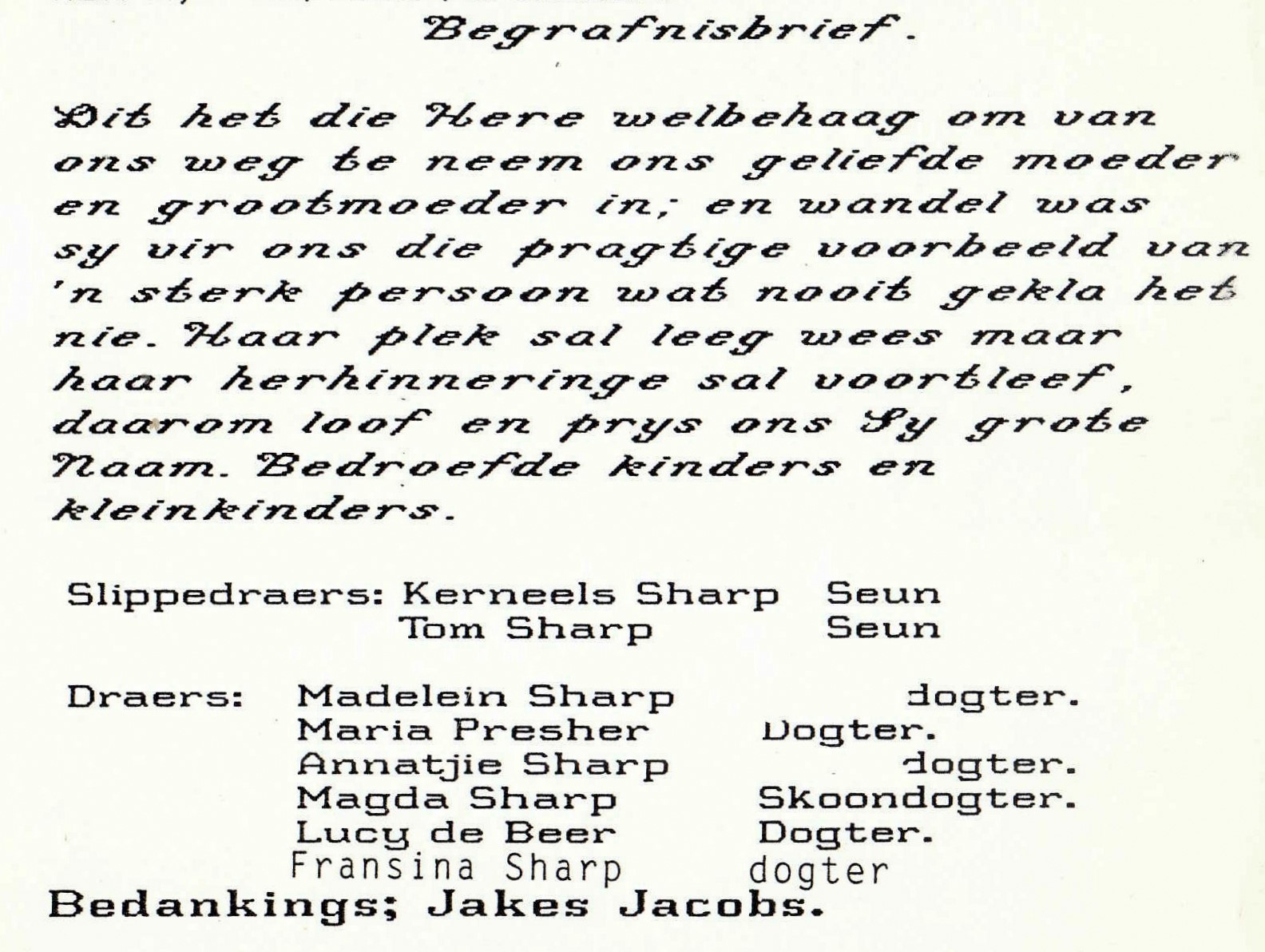 Funeral Programs / Begrafnisbriewe