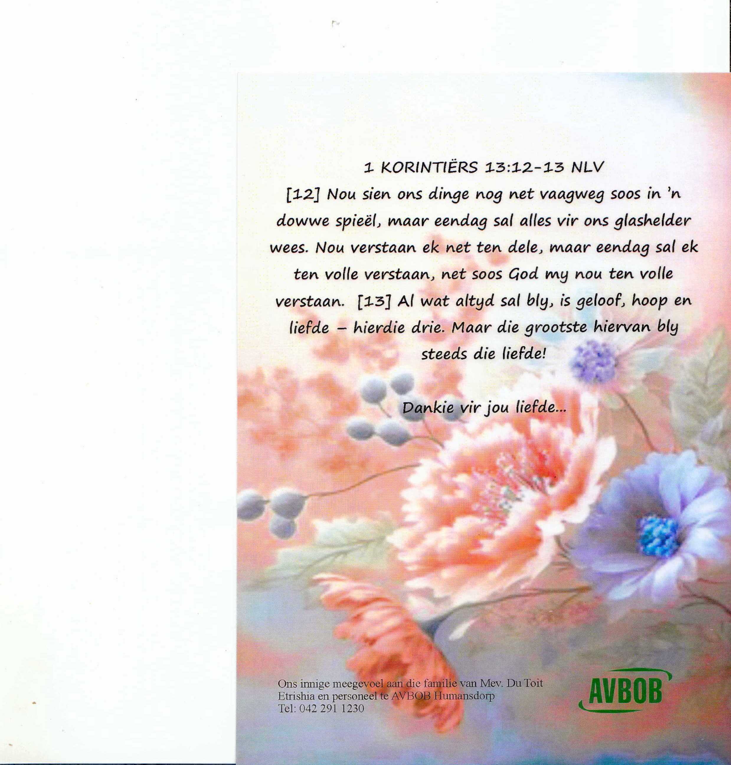 Funeral Programs / Begrafnisbriewe